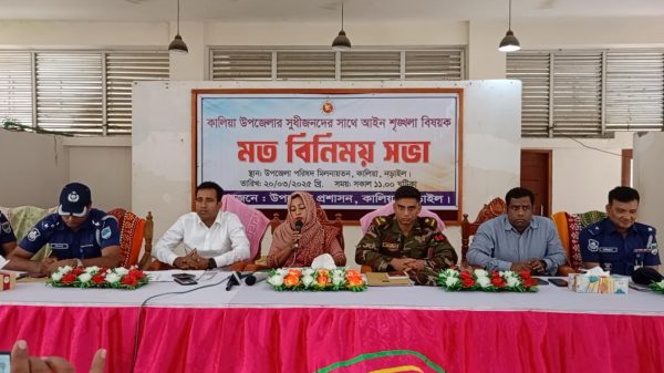 কালিয়ায় আইন শৃঙ্খলা বিষয়ক মতবিনিময় সভা অনুষ্ঠিত।