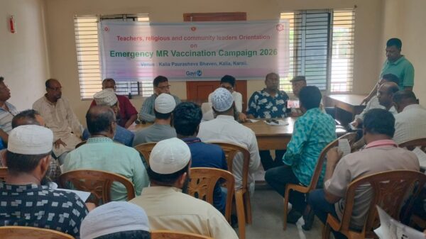 ডেস্ক নিউজঃ গণপ্রজাতন্ত্রী বাংলাদেশ সরকারের স্বাস্থ্য অধিদপ্তর ইপিআই/জরুরী টিকাদান কর্মসূচি নির্দশনায় নড়াইলের কালিয়া পৌরসভায়  রুবেলা হাম  ক্যাম্পেইন ২০২৬ এর পৌরসভা পর্যায় প্রশিক্ষণ কর্মশালা অনুষ্ঠিত হয়েছে। ১৬ এপ্রিল (বৃহস্পতিবার) সকাল ১১ থেকে দুপুর ১ টা পর্যন্ত পৌরসভা হলরুমে এ প্রশিক্ষণ কর্মশালা অনুষ্ঠিত হয়। read more