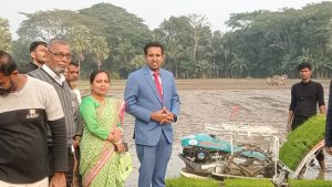 কালিয়ায় রাইস ট্রান্সপ্লান্টার মেশিনের মাধ্যমে ধানের চারা রোপন কার্যক্রমের উদ্বোধন