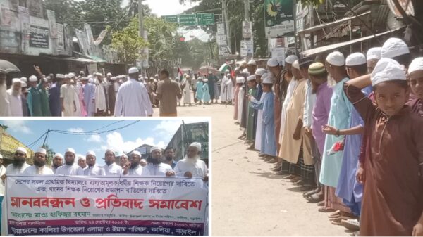 ডেস্ক নিউজ দেশের সকল প্রাথমিক বিদ্যালয়ে বাধ্যতামূলক ধর্মীয় শিক্ষক নিয়োগ ও গানের শিক্ষক নিয়োগের প্রজ্ঞাপন বাতিলের দাবিতে মানববন্ধন ও প্রতিবাদ সমাবেশ করেছে কালিয়া উপজেলা ওলামা ও ইমাম পরিষদ। ২৪ সেপ্টেম্বর read more