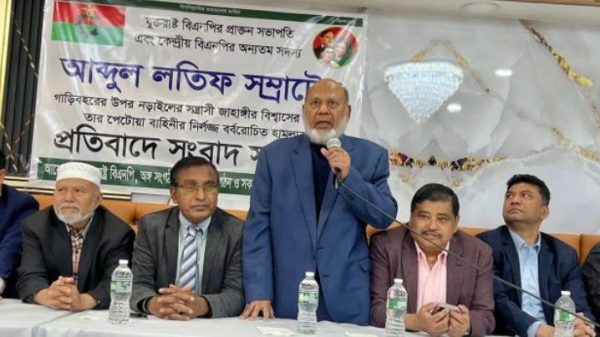 যুক্তরাষ্ট্র বিএনপির সাবেক সভাপতি আঃ লতিফ সম্রাটের ওপর নড়াইলে সন্ত্রাসী হামলার প্রতিবাদে নিউইয়র্কে সংবাদ সম্মেলন