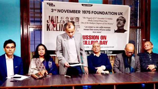 হাকিকুল ইসলাম খোকন ,বাপসনিউজঃ ১৯৭৫ সালের ৩ নভেম্বর ঢাকা কেন্দ্রীয় কারা অভ্যন্তরে জাতীয় চার নেতা হত্যাকাণ্ড ইতিহাসের নজিরবিহীন কালো অধ্যায়। গত ৩রা নভেম্বর (রবিবার) সন্ধ্যা ৭টায় পূর্ব লন্ডনের কমার্শিয়াল রোডে