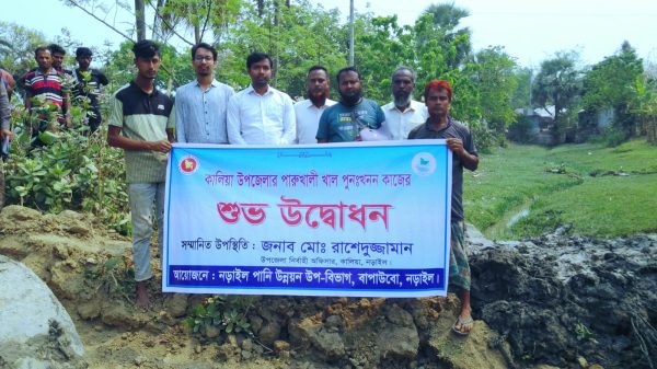 গোলাম রব্বানী, স্টাফ রিপোর্টার। নড়াইলে কালিয়া উপজেলার নড়াগাতী থানার কলাবাড়িয়া ইউনিয়নের পারোখালি খাল পূনঃখনন কাজের শুরুতে দোয়া ও মোনাজাতে মাধ্যমে খালের শুভ উদ্বোধন করা হয়েছে। সোমবার সকাল ১০টায় (১৭ মার্চ)